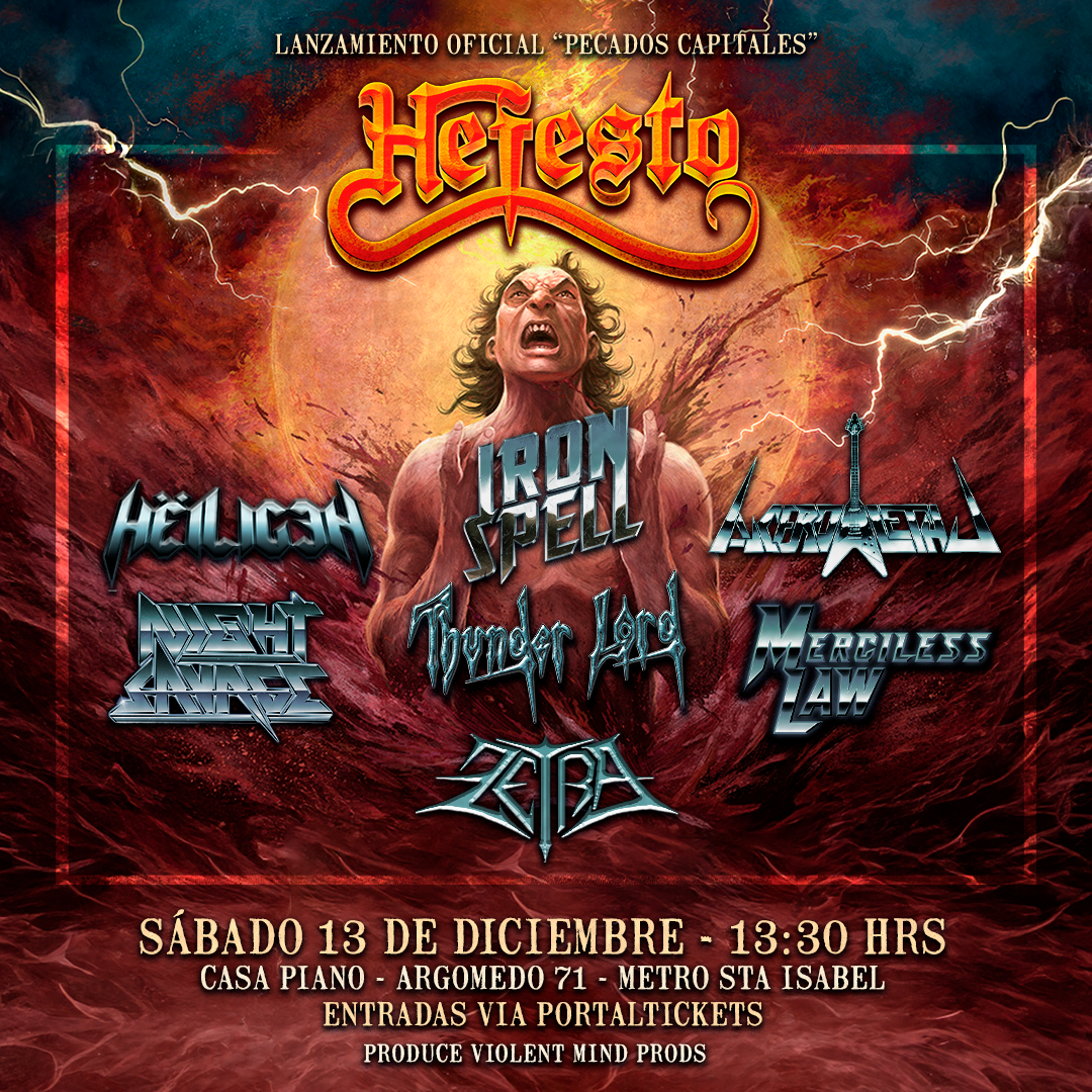 El lanzamiento en vivo será una verdadera fiesta del Heavy Metal, con la participación de Iron Spell, Acero Letal, Night Savage, Zetra (Valdivia), Merciless Law (Concepción), Heiligen, y Thunder Lord, siete potentes exponentes del género que los acompañarán en esta jornada de fuego y acero. Además, el evento pretende armar todo un ecosistema asociado al metal con espacio para distros, emprendimientos, merch y oportunidades de prensa. Se recuerda que no estará permitido el ingreso de alcohol al recinto.