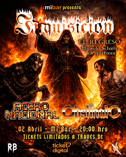 La jornada comenzará con las presentaciones de Acero Nacional y ObstinatO, dos potentes exponentes del metal capitalino que representarán a nuevas y actuales hornadas de la escena, preparando el escenario para el regreso de Inquisición. De esta forma, el